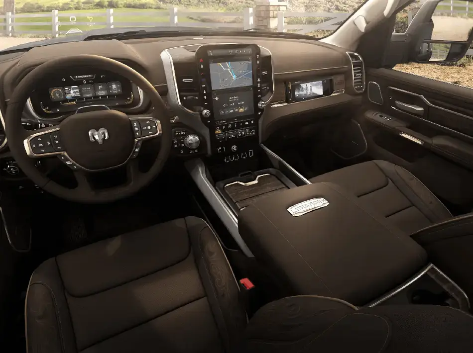 Até os espelhos retrovisores da Nova Ram 3500 merecem destaque. Eles possuem comandos elétricos independentes, rebatimento elétrico, antiembaçante, luzes de posição e de cortesia, LED de alta performance voltados para trás e duas opções de posição, aumentando o campo de visão quando se está rebocando um grande objetivo.